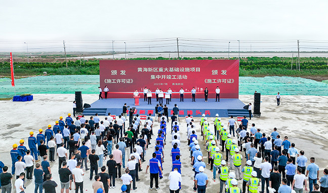集團(tuán)領(lǐng)導(dǎo)參加黃海新區(qū)重大基礎(chǔ)設(shè)施項(xiàng)目集中開工及竣工儀式