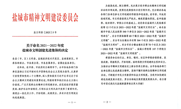 喜報(bào)!海興集團(tuán)榮獲“鹽城市文明單位”稱號(hào)